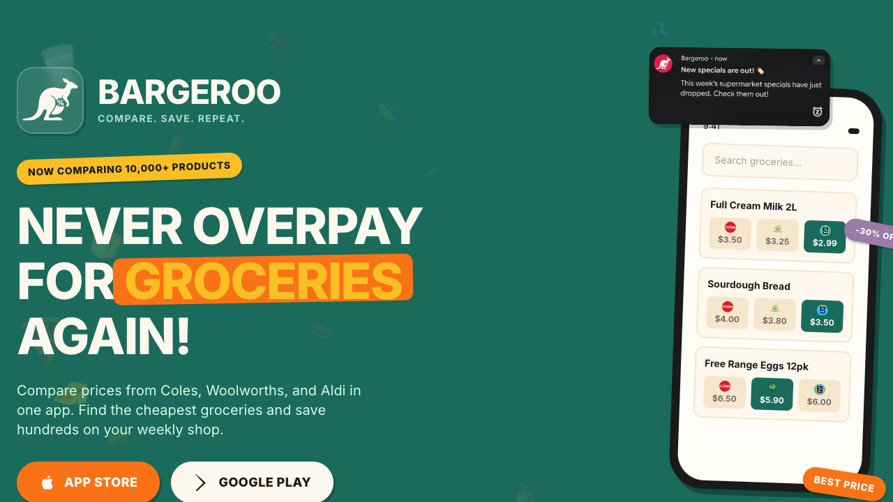 Mobile AppFull-stack price comparison platform aggregating 50K+ products from Coles, Woolworths, and Aldi. Automated Playwright and async HTTP scrapers process ~150K daily updates with batch persistence. React Native (Expo) frontend with Zustand state management, TanStack Query, and FCM push notifications. FastAPI backend with JWT device auth, rate limiting, and sub-100ms Meilisearch full-text search. Deployed on Fly.io with Docker and auto-scaling.